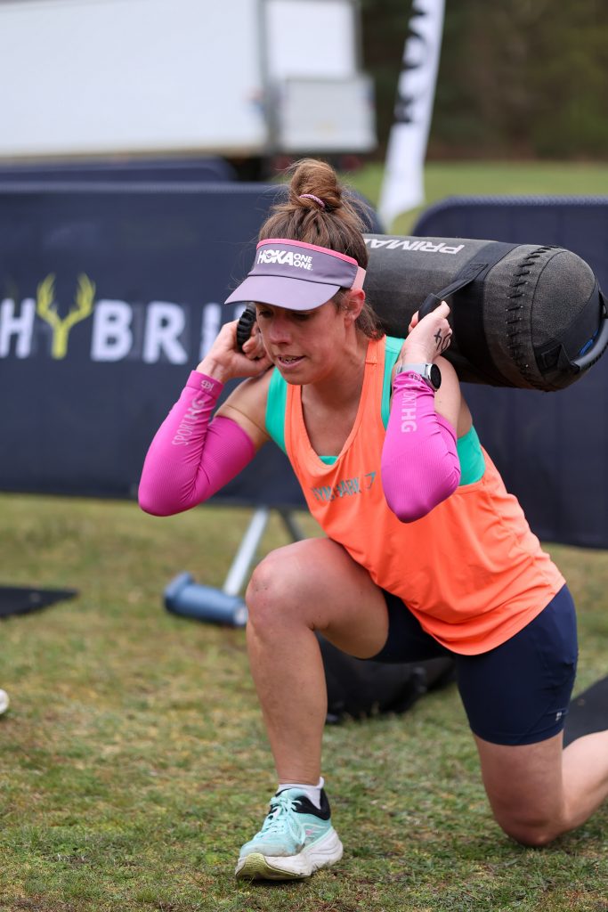 With good weather conditions everyone taking part took advantage of a great opportunity to test themselves. The five functional stations of Sandbag Lunges, D-Ball Cleans, Sled Pushes, Devil’s Press & Wall Balls interspersed with 1km runs (5Km on the last lap).