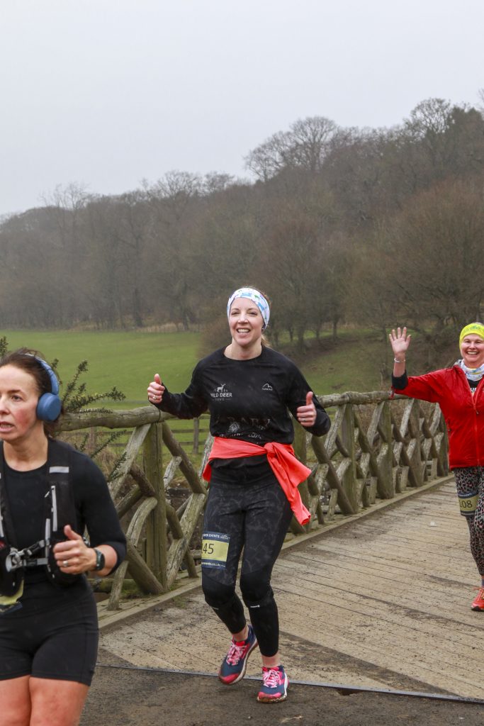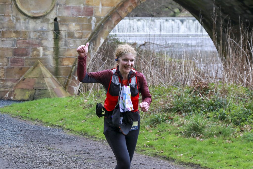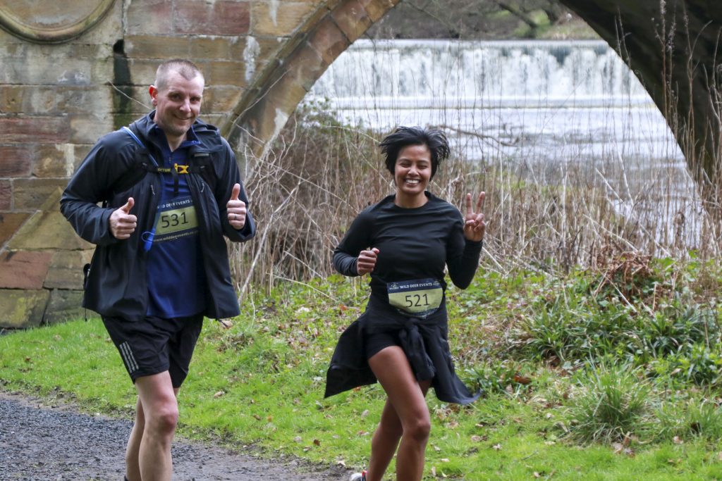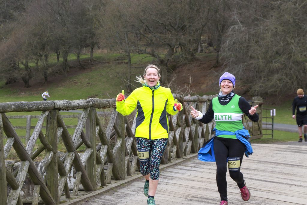 Whilst it was supposed to stay dry for the duration there was quite a heavy shower at the mid point, but as already mentioned these runners were made of stern stuff and it did not deter them or slow the fun down. Certainly when the bad weather hit me on the bridge it seemed to have the opposite and create more crazy running poses, yes we had aeroplanes, love hearts, thumbs up and a plethora of others.